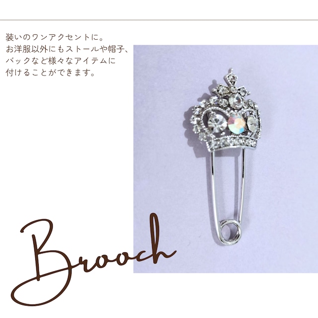 ピンブローチ キルトピン ショールピン 王冠 シルバー キラキラ ストーンアクセサリー シンプル 結婚式 パーティー 普段使い