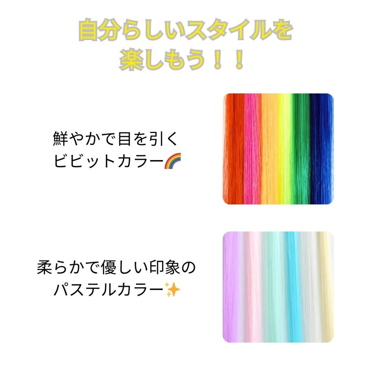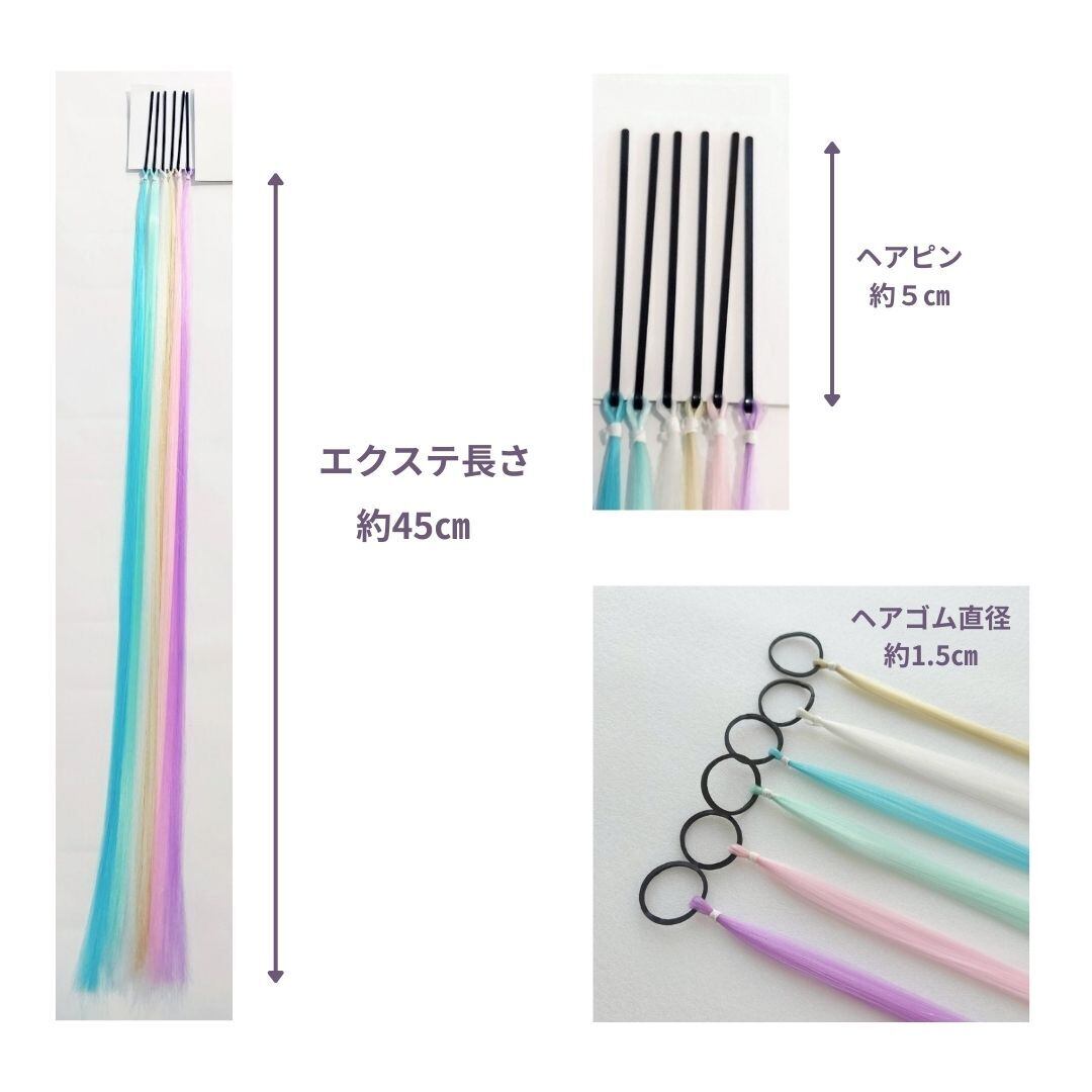 ビビットカラーとパステルカラーのヘアエクステ6本入りのセットです。