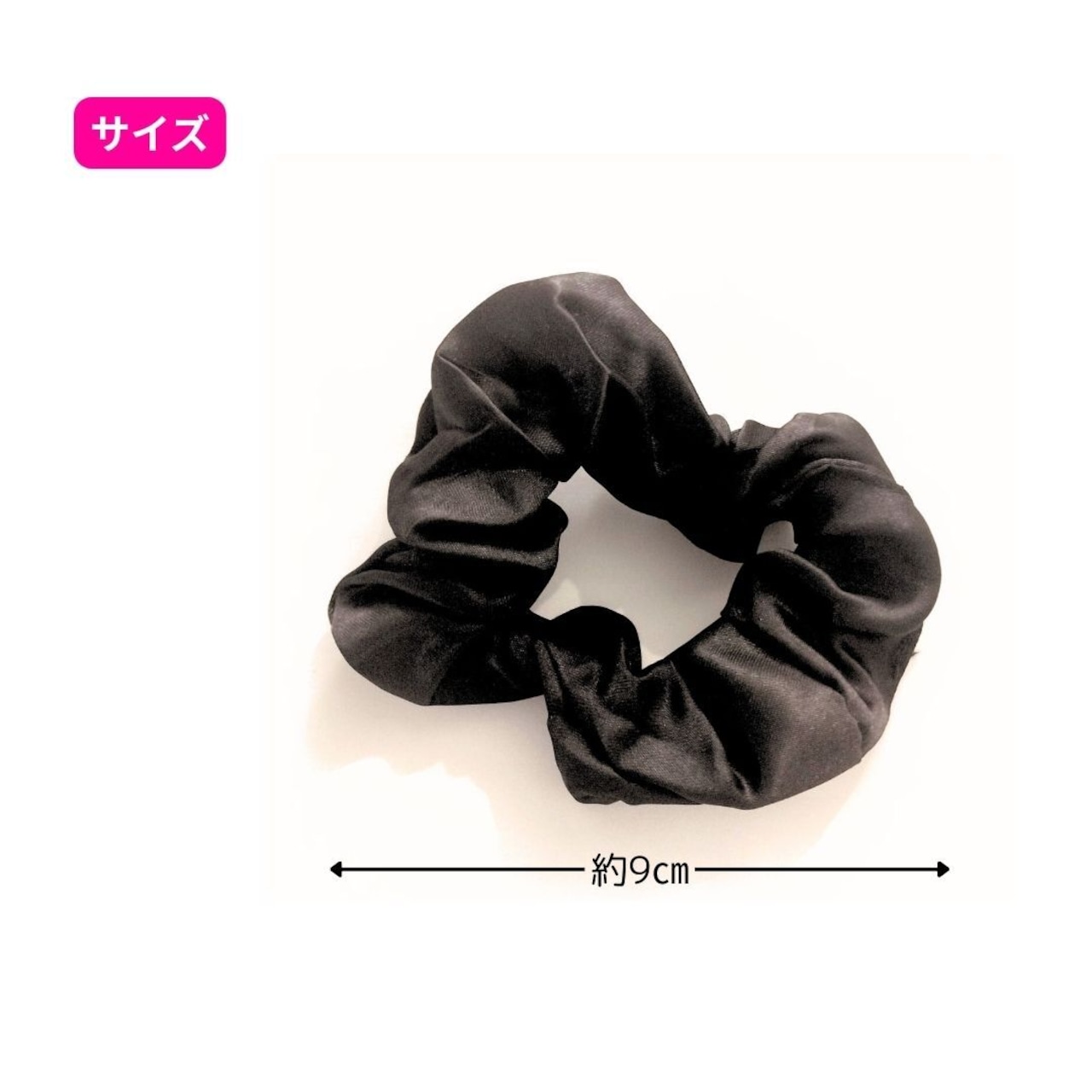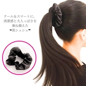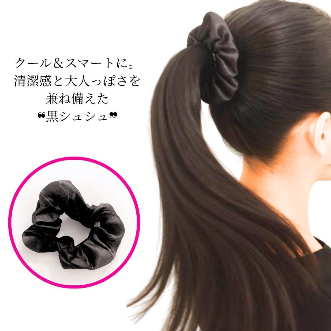 カジュアルからフォーマルなシーンまで幅広く使える、オシャレな黒シュシュです。