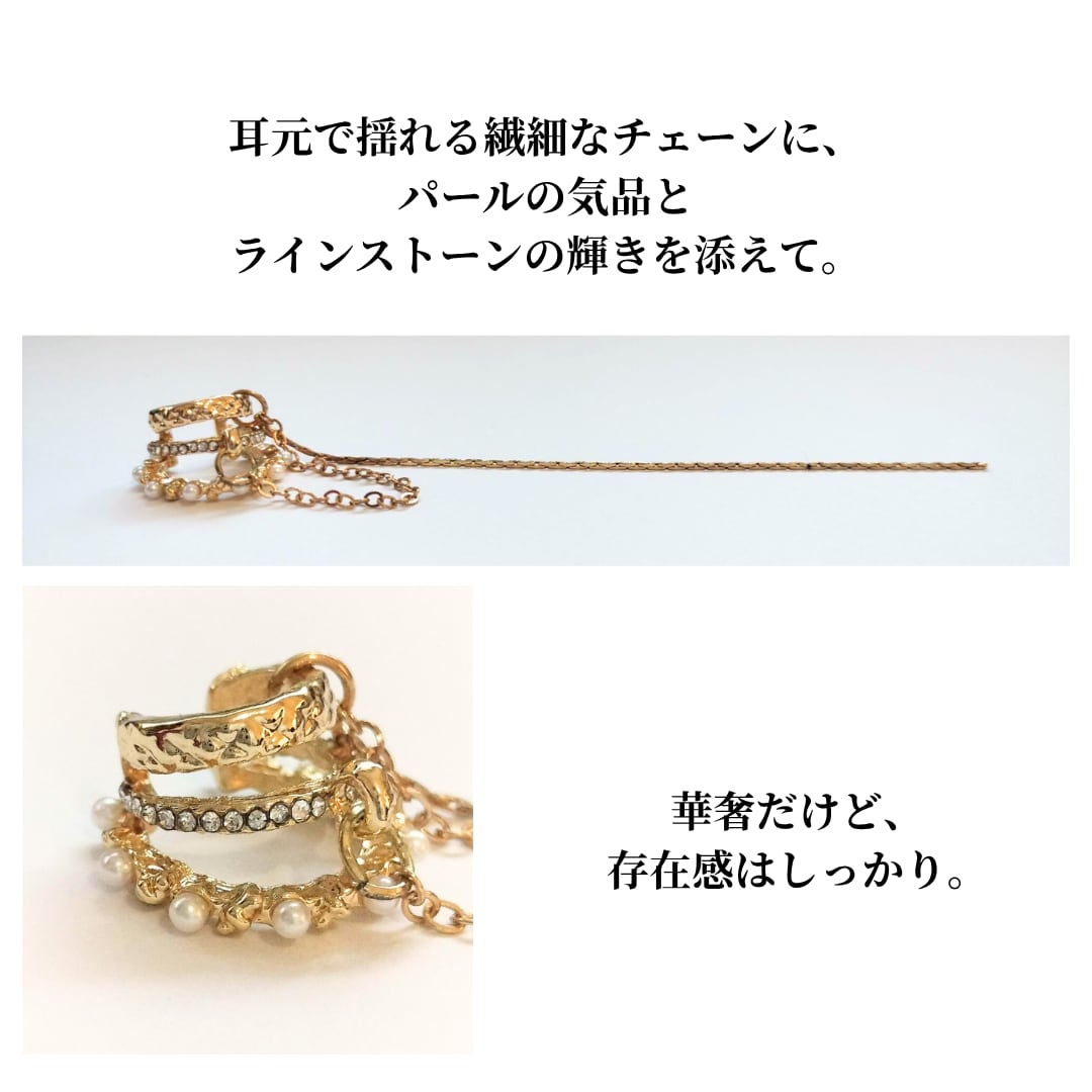イヤーカフ 片耳 チェーン パール ラインストーン 上品 キレイ レディース おしゃれ フォーマル カジュアル