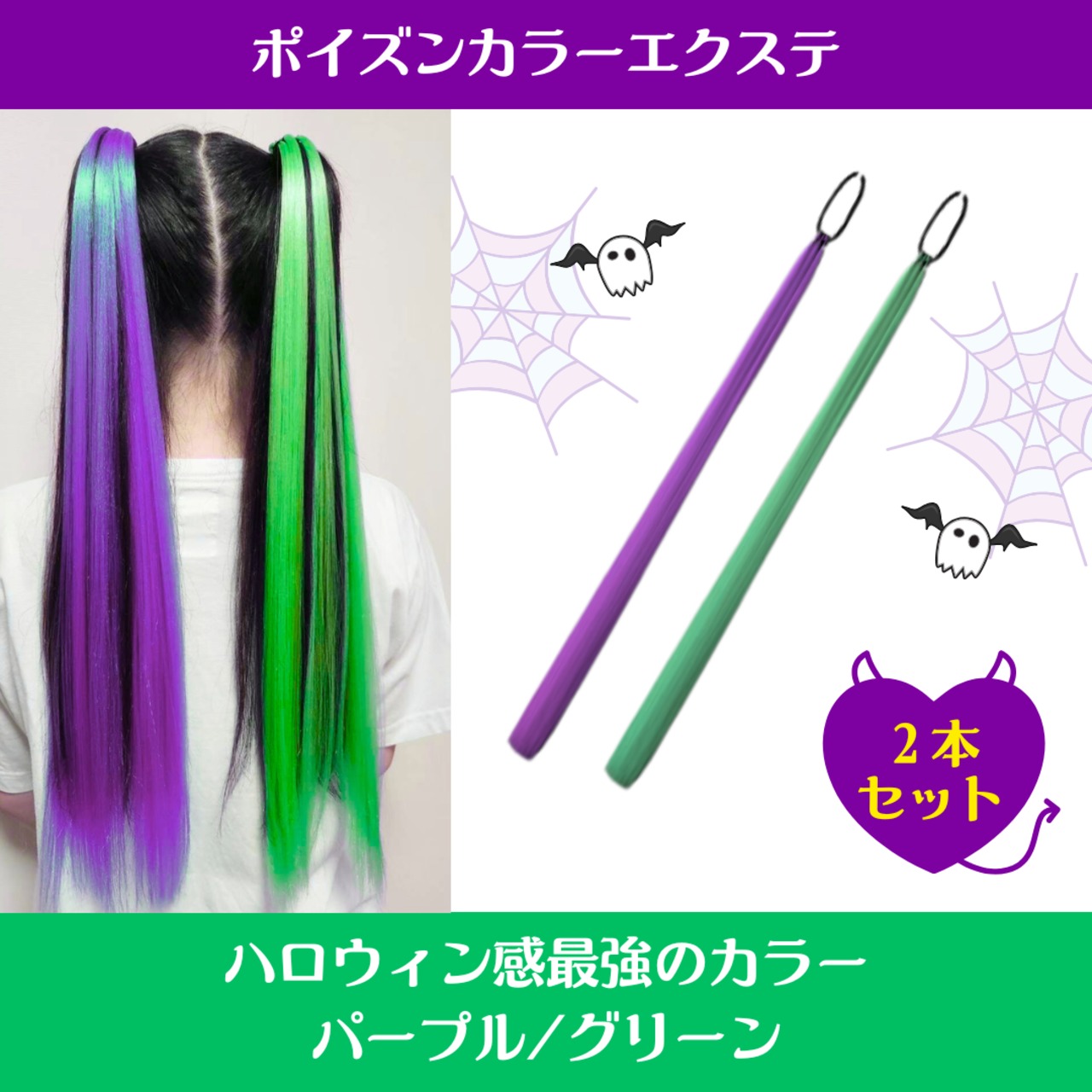 ヘアエクステ 2本セット コスプレ ゴム付き パープル グリーン ダンスアクセ 可愛い ストレート ハロウィン モンスター ゾンビ ゴシックヘア 魔女 パーティー | ダンスアクセ専門店 FairyTale