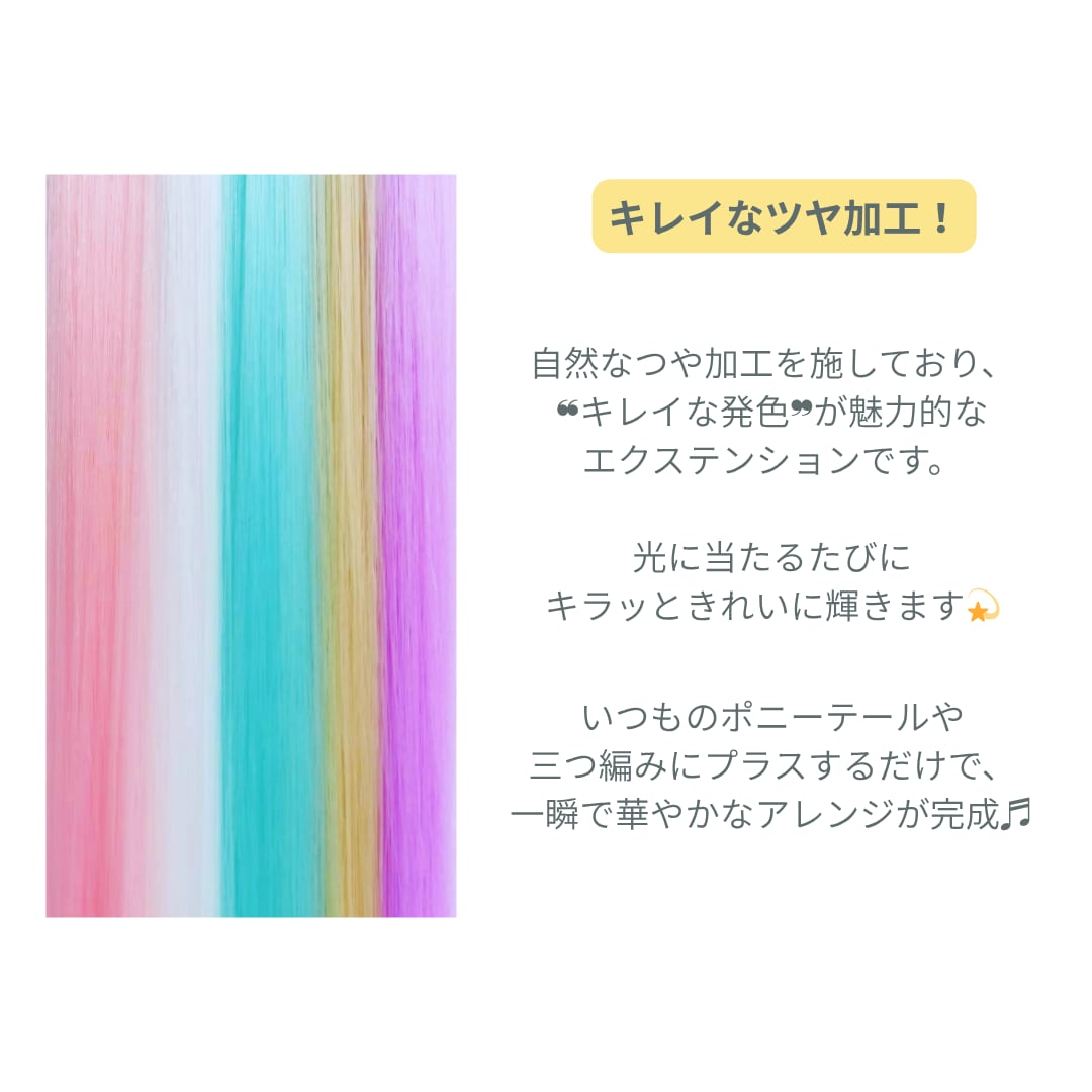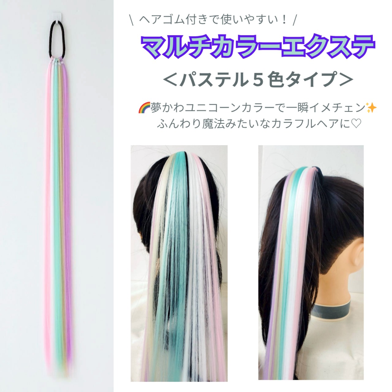 ※ひとつのヘアゴムに5束(5色)のエクステンションが付いています。