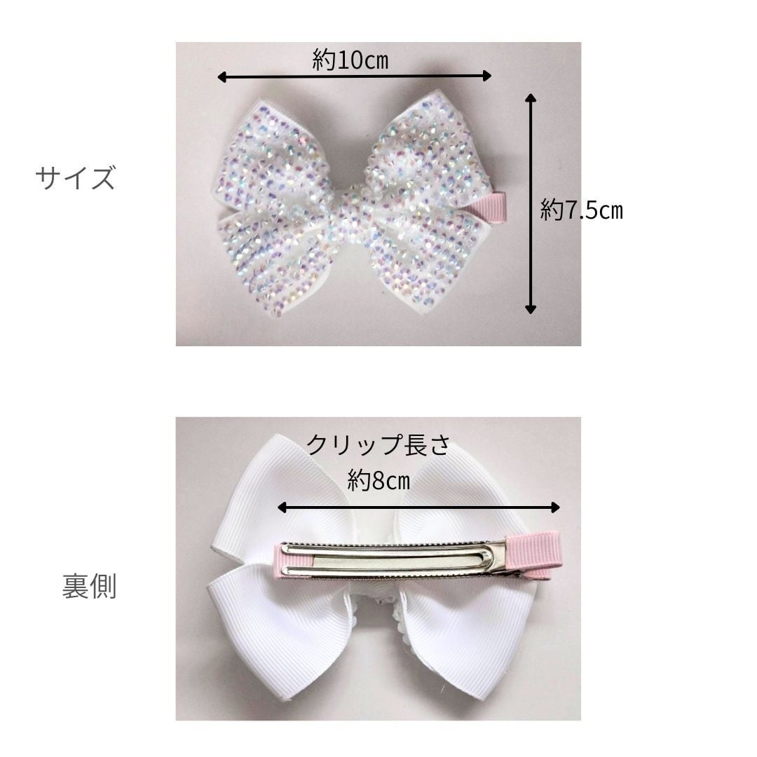 リボンデザインで可愛さ満点!ラインストーンのきらめきでちょっぴり大人っぽさもプラス。