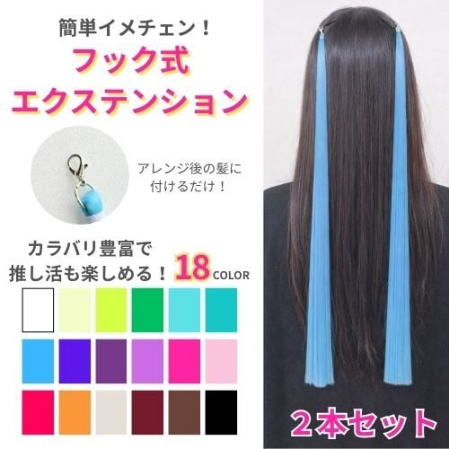 ヘアエクステンション 2本セット ロング ストレート フック 簡単ヘアアレンジ 約50㎝ ダンスエクステ パーティー お祭り イベント