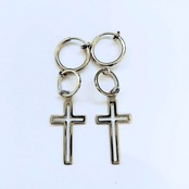 クロスモチーフがシンプルでカッコいい、 シルバーフープイヤリング。