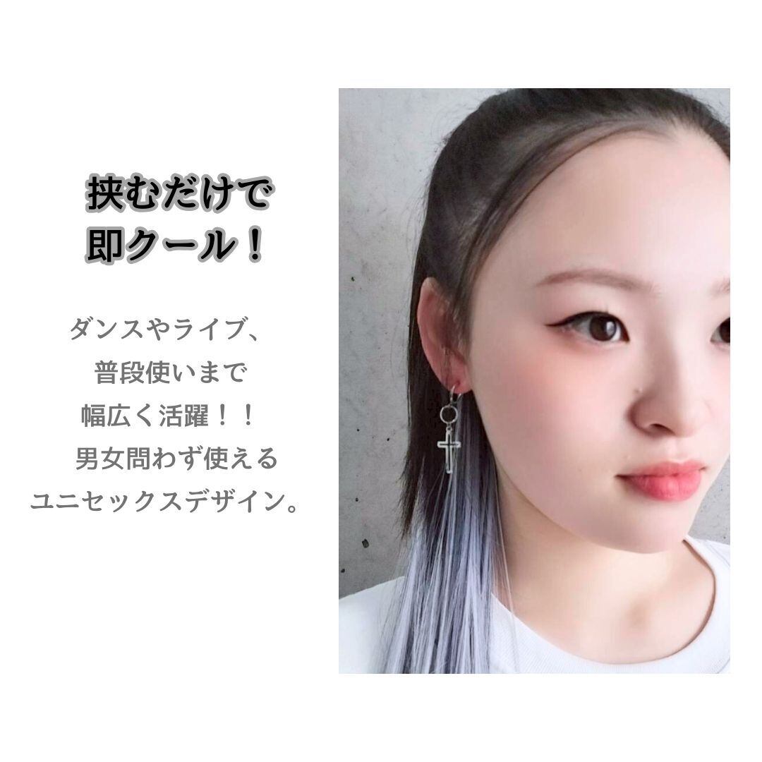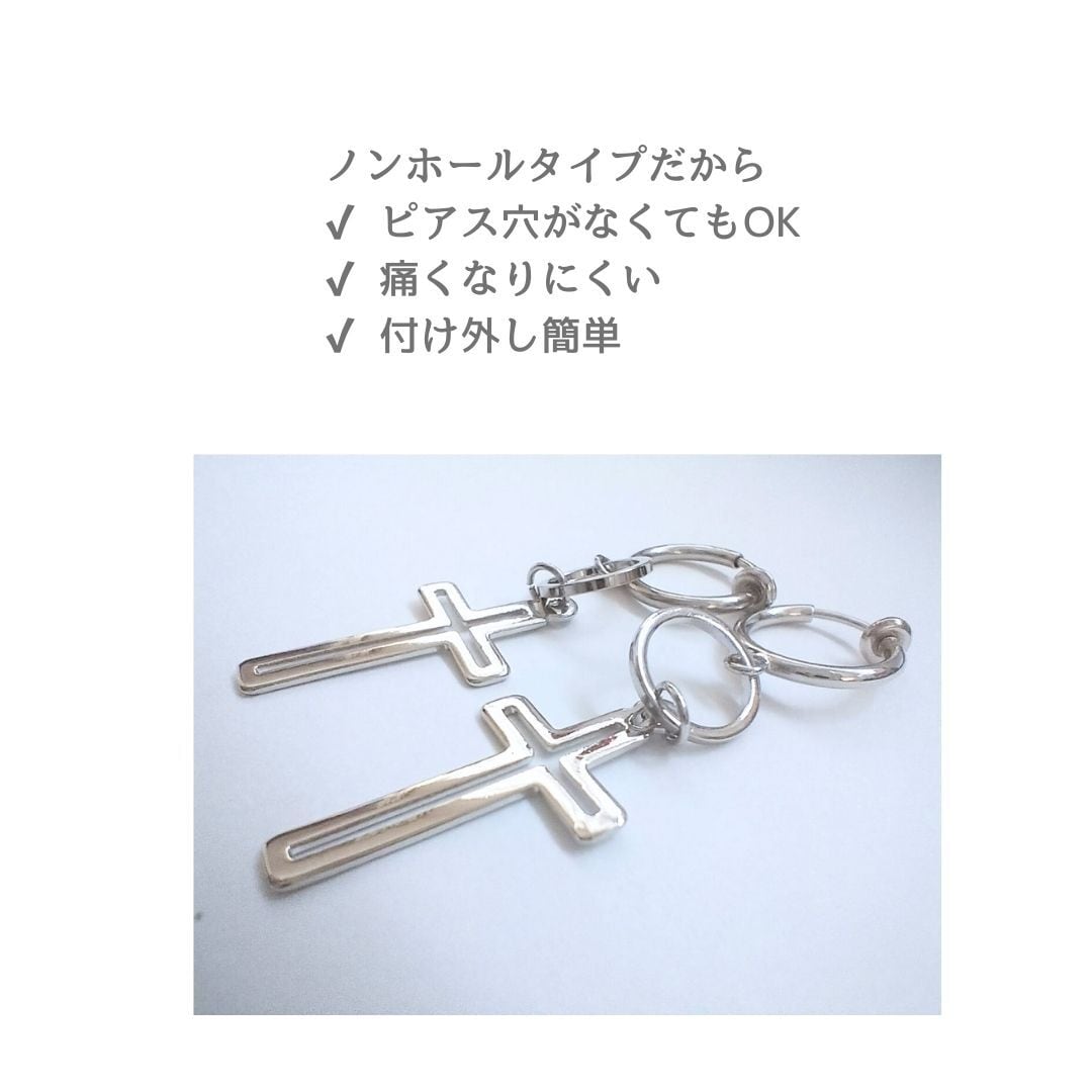ノンホールピアス 両耳用 シルバー クロス 十字架 ノンホール 男女兼用 キッズ クール かっこいい ダンスアクセ