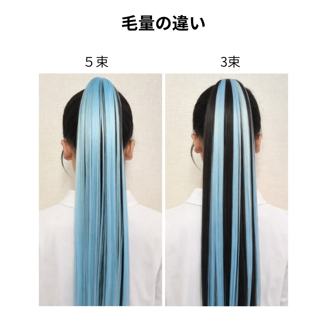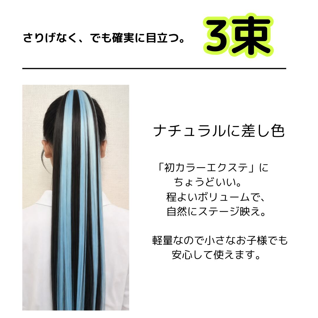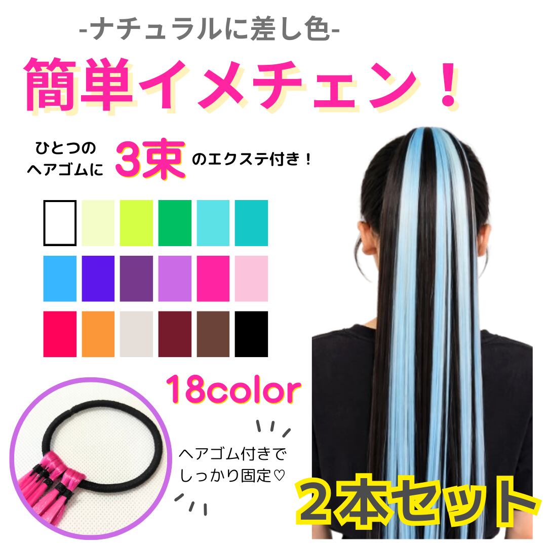 エクステ ゴム付き 2本セット ストレート 3束 単色カラー ロング ダンス お祭り コスプレ イベント 発表会 時短ヘアアレンジ