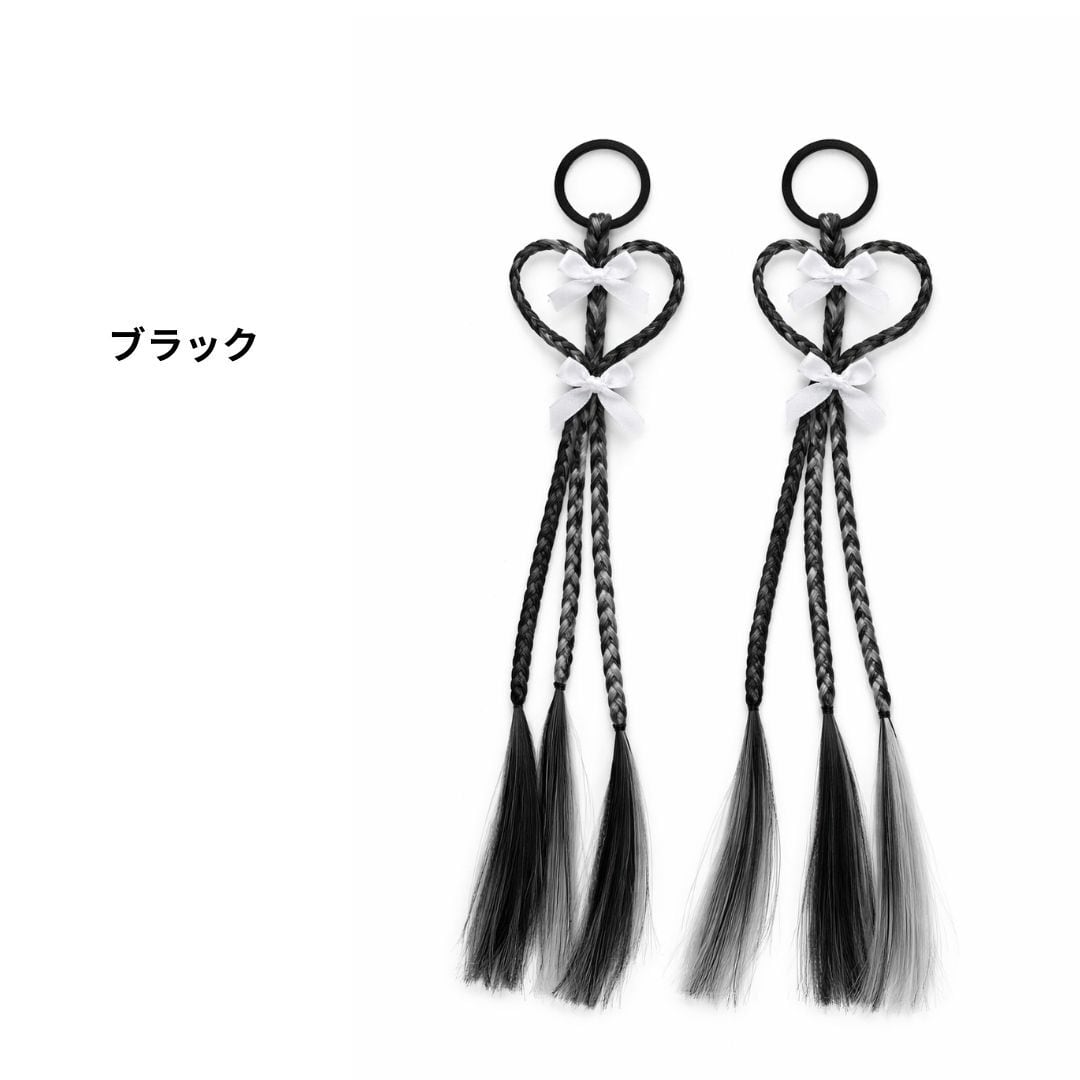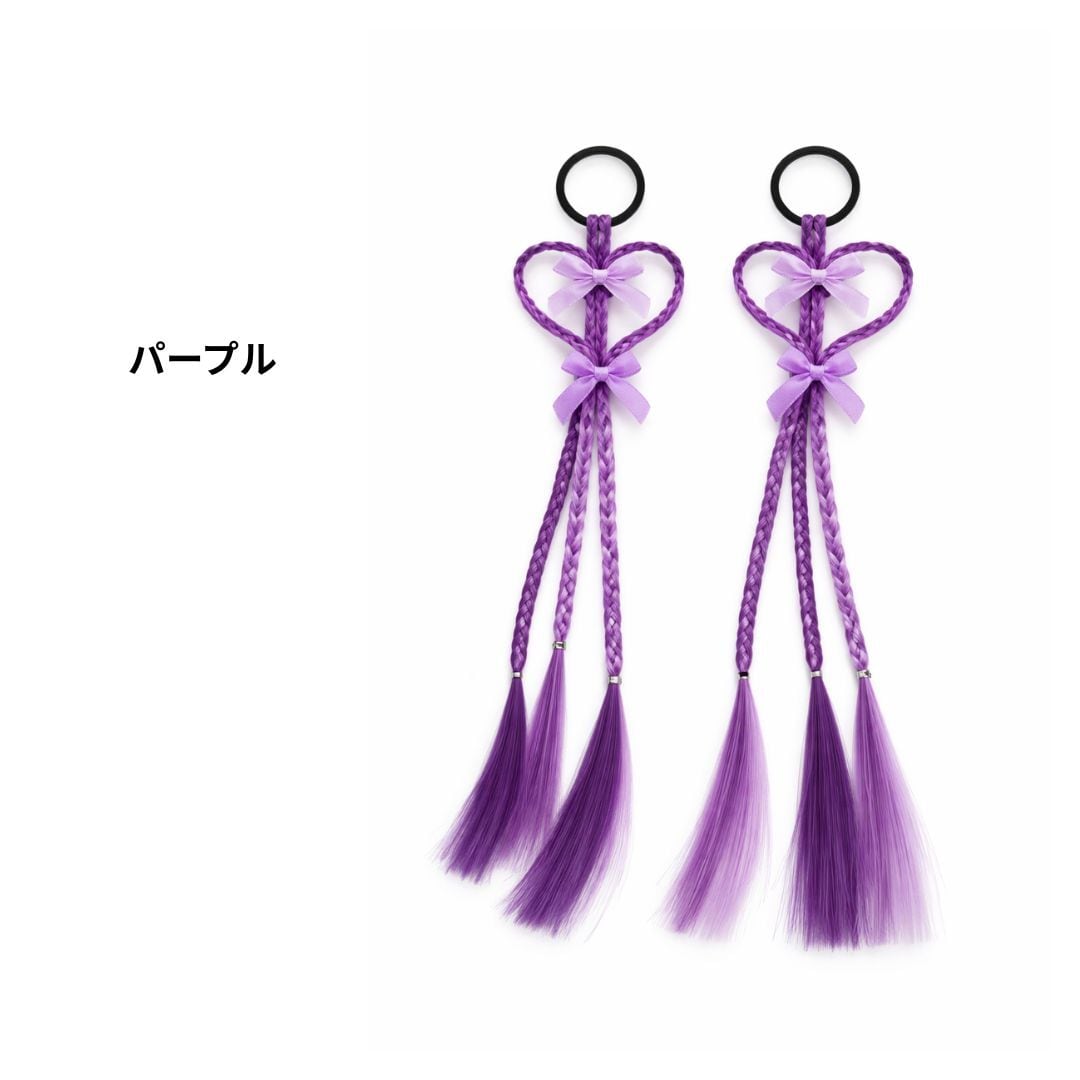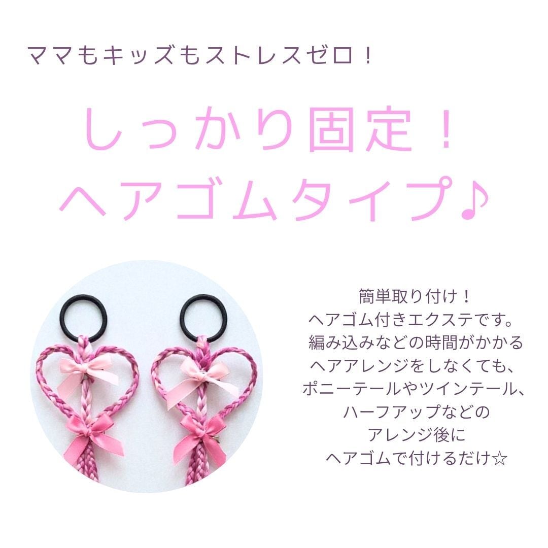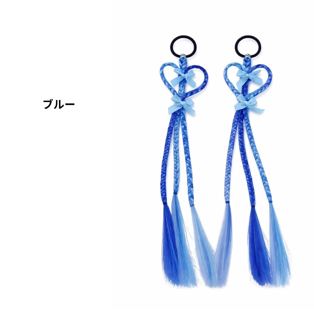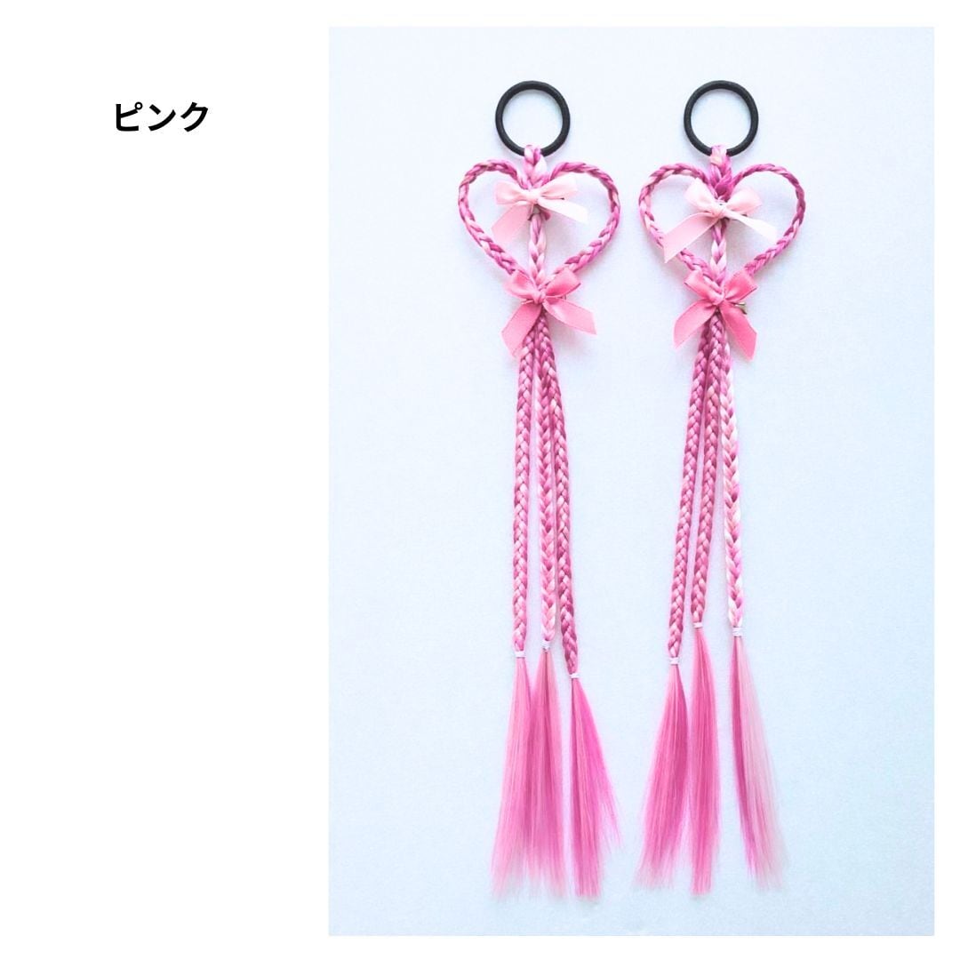 エクステンション ハート編みリボンヘアエクステ ヘアゴム 40cm 2本セット ダンスアクセ ハート リボン キッズ ヘアアレンジ ポイントエクステ