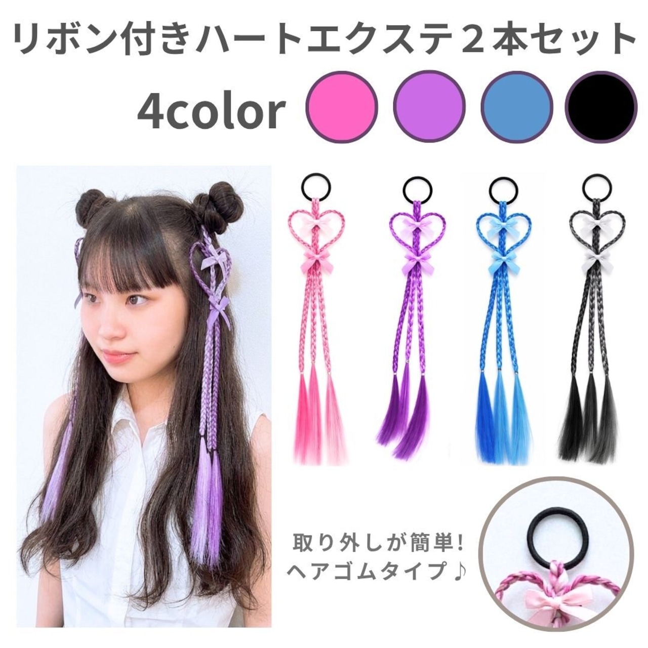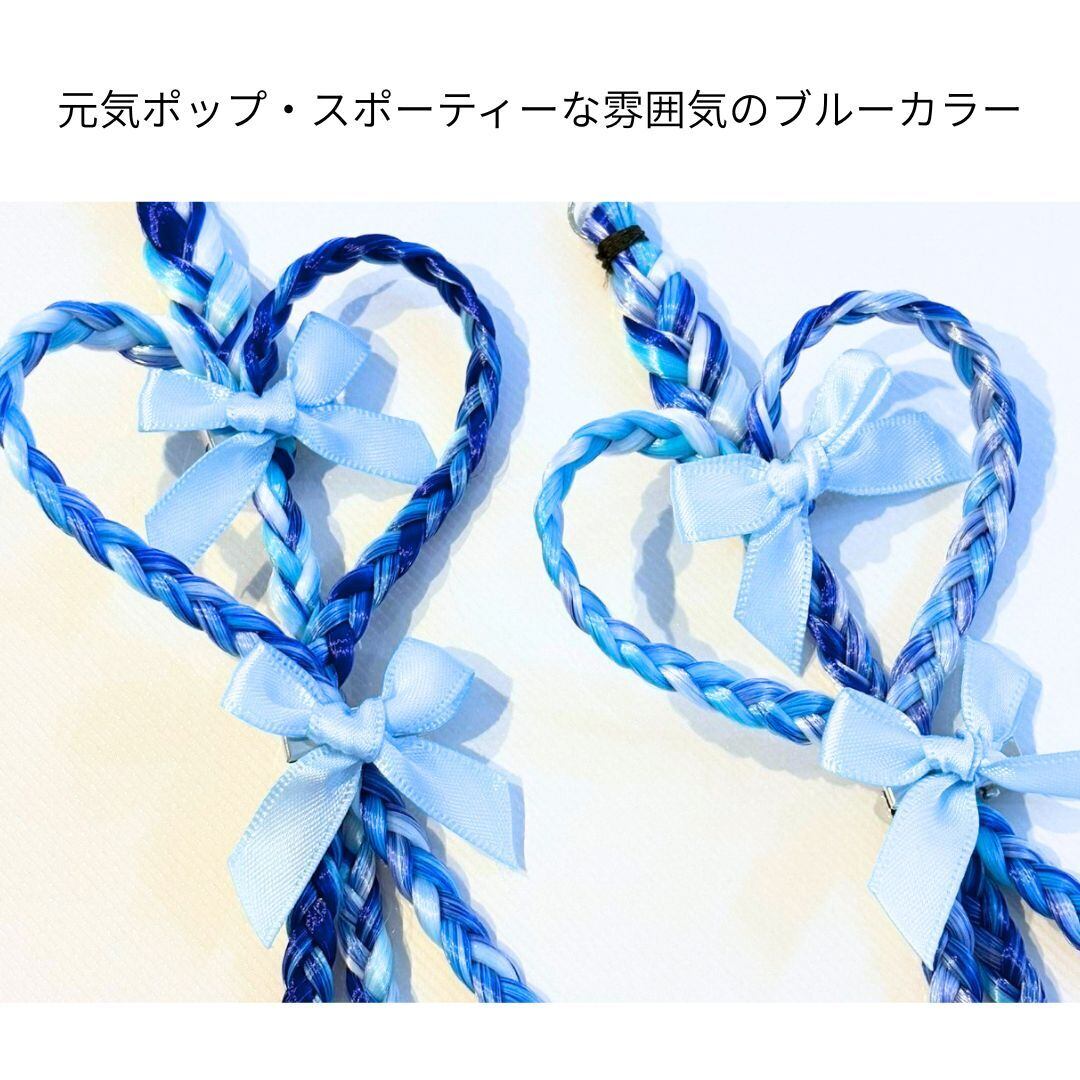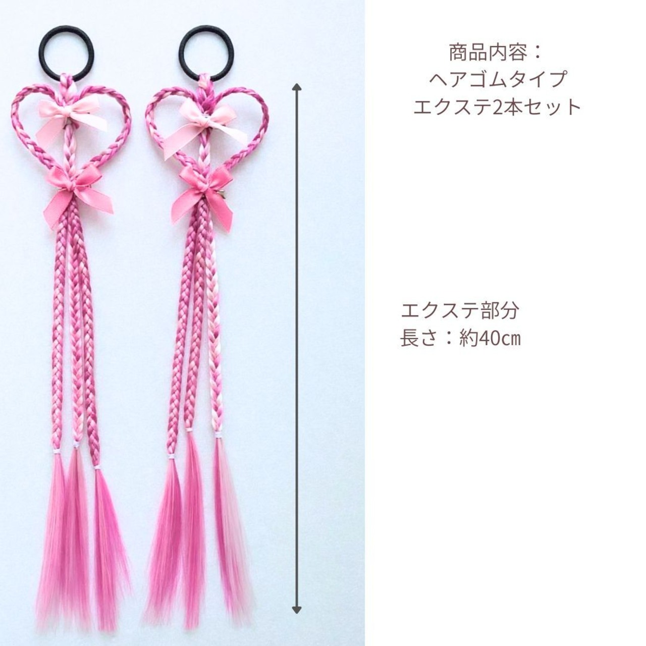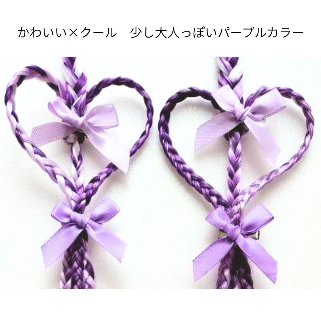 エクステンション ハート編みリボンヘアエクステ ヘアゴム 40cm 2本セット ダンスアクセ ハート リボン キッズ ヘアアレンジ ポイントエクステ