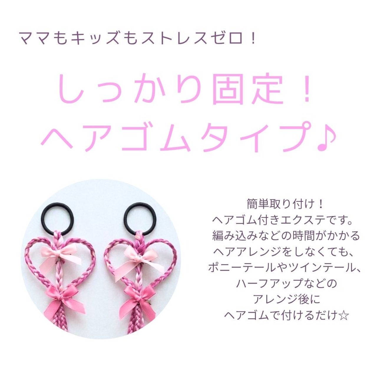 時間がかからずママもキッズもストレスが少なく簡単にヘアアレンジが楽しめます。
