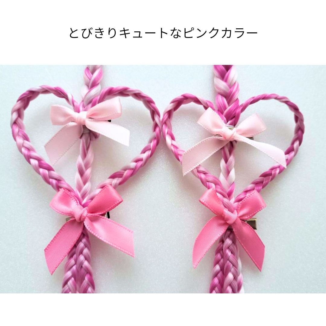 ハートアレンジ&リボンを飾り付けた可愛いヘアエクステンション2本セット。