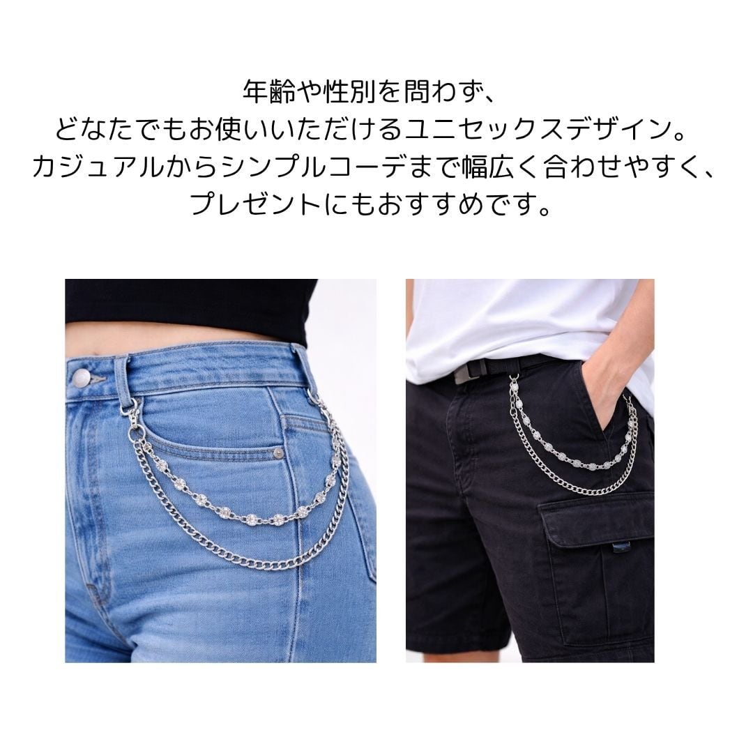 ウォレットチェーン ウォレットチェーン シルバー ラインストーン メンズ レディース キッズ 腰 ウエスト