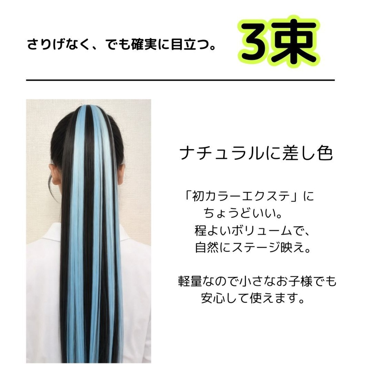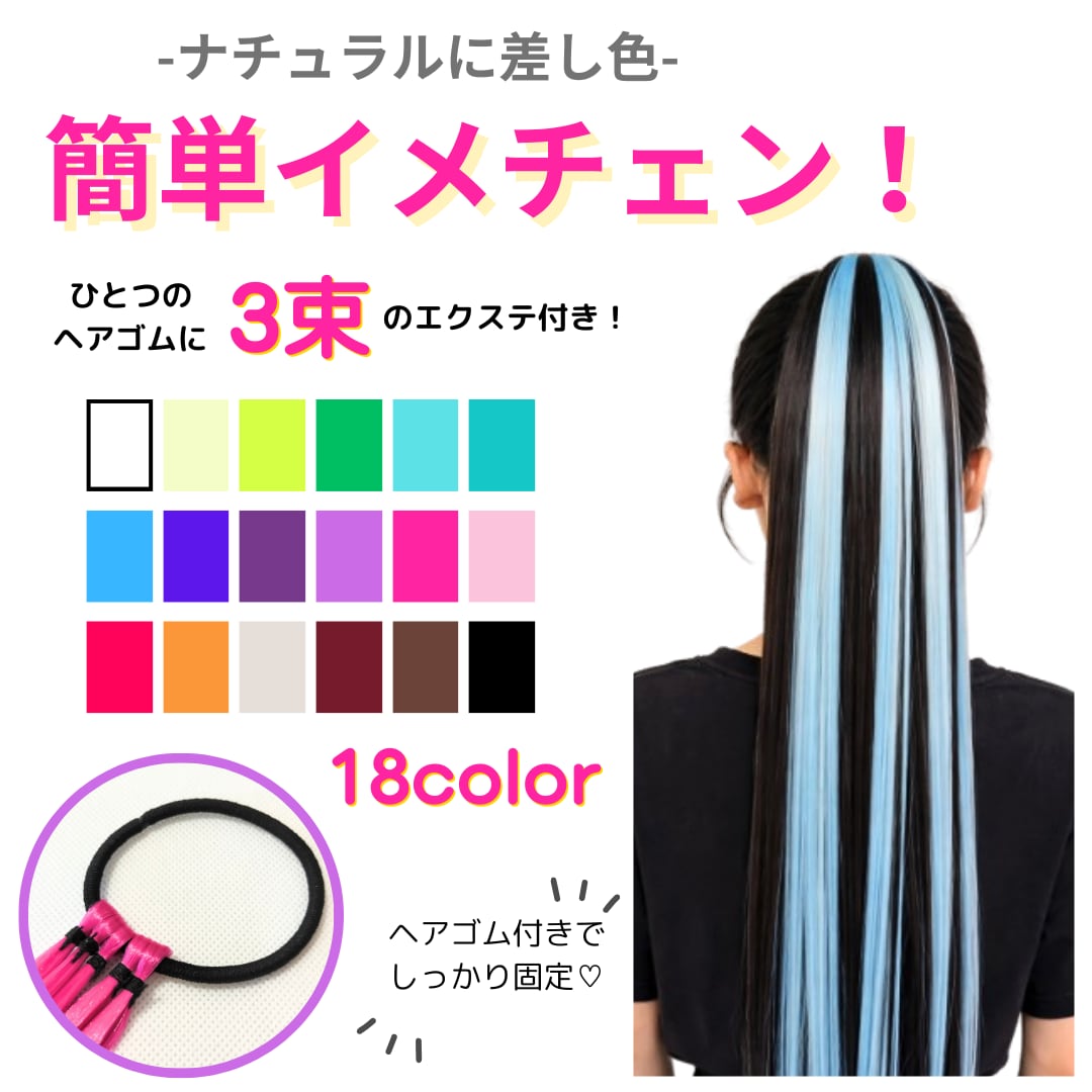 エクステ ゴム付き ストレート 3束 単色カラー 18色 簡単 ロング 50cm ツインテール クリスマス ダンス お祭り イベント 発表会