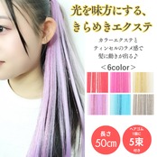 エクステ ティンセル入り ティンセルブレンド ダンス ヘアゴム付き ストレート ポイントウィッグ 部分エクステ 子供 大人 5束 単色 ロング ダンス衣装 お祭り カラフル イベント