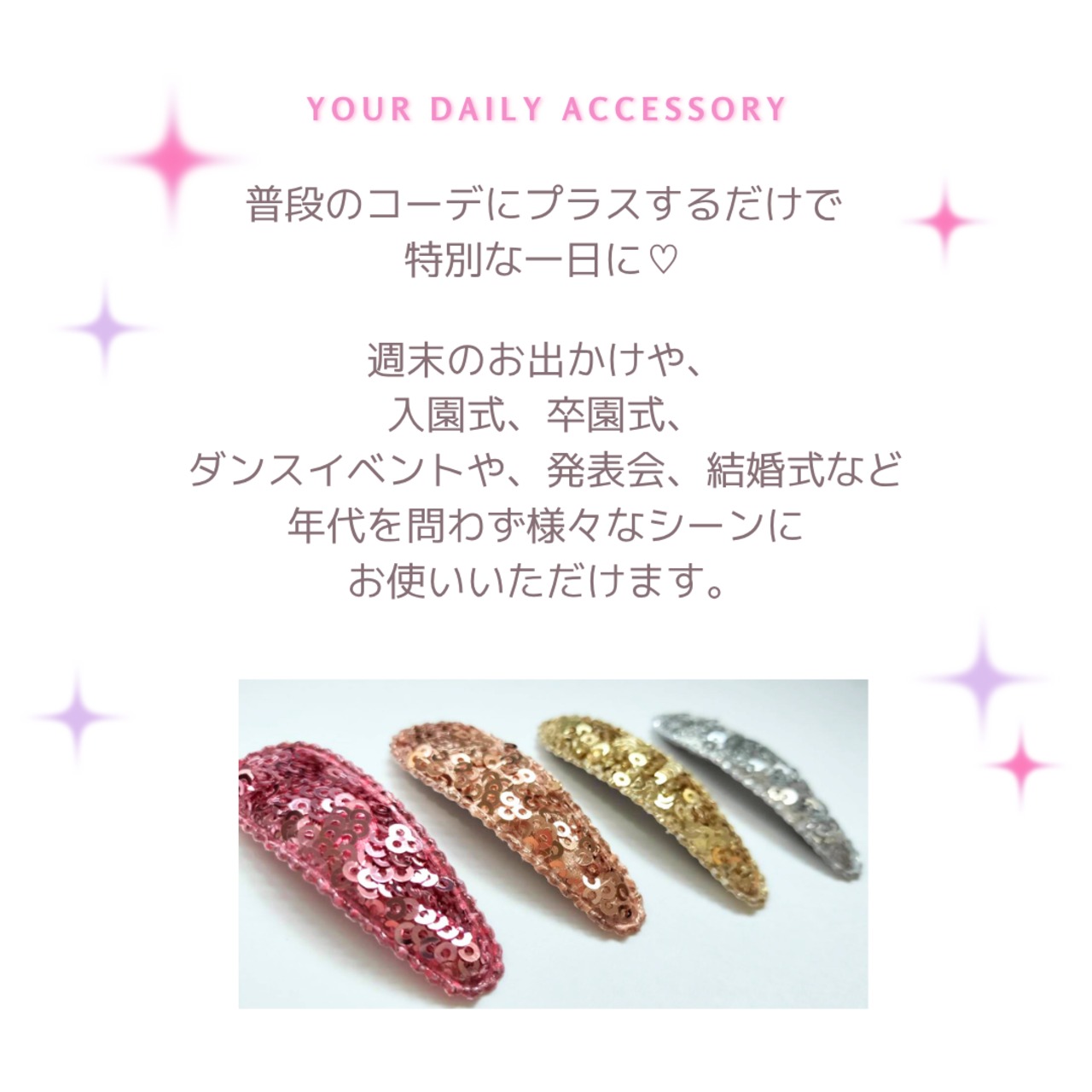 華やかなスパンコールが施されたヘアピンは、どんな場面でも思わず目を奪います。