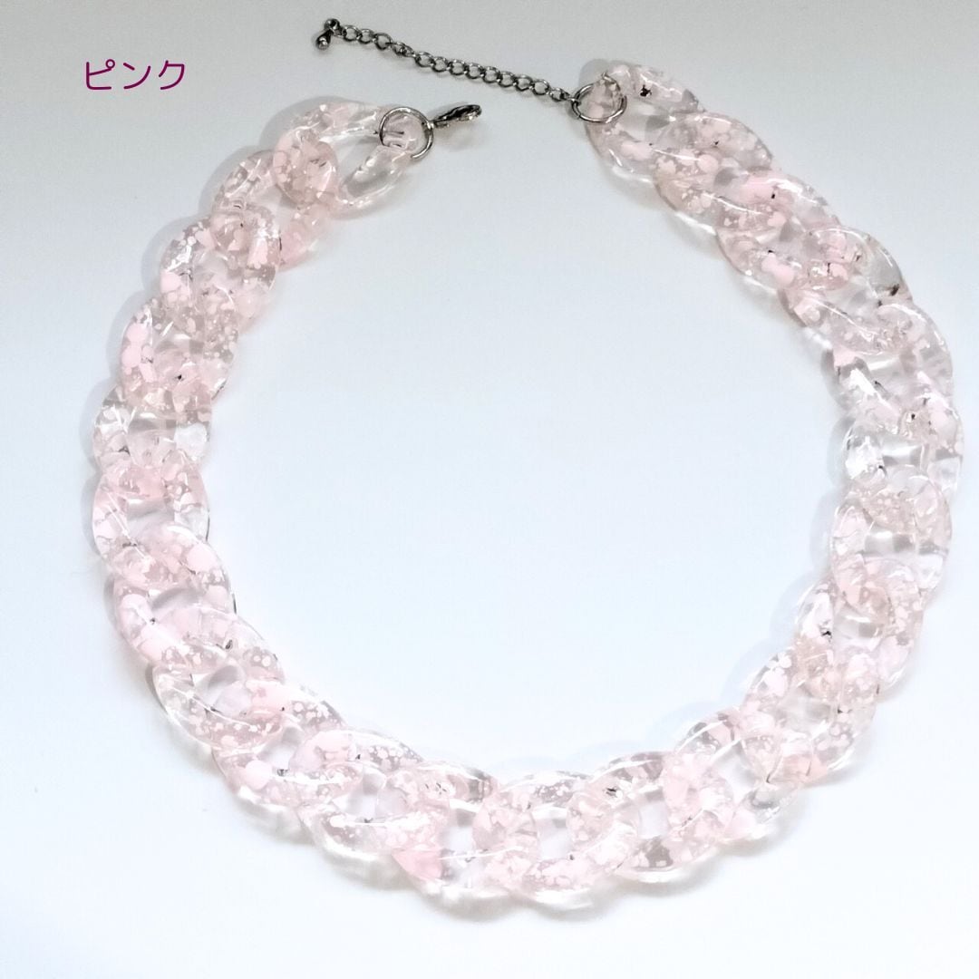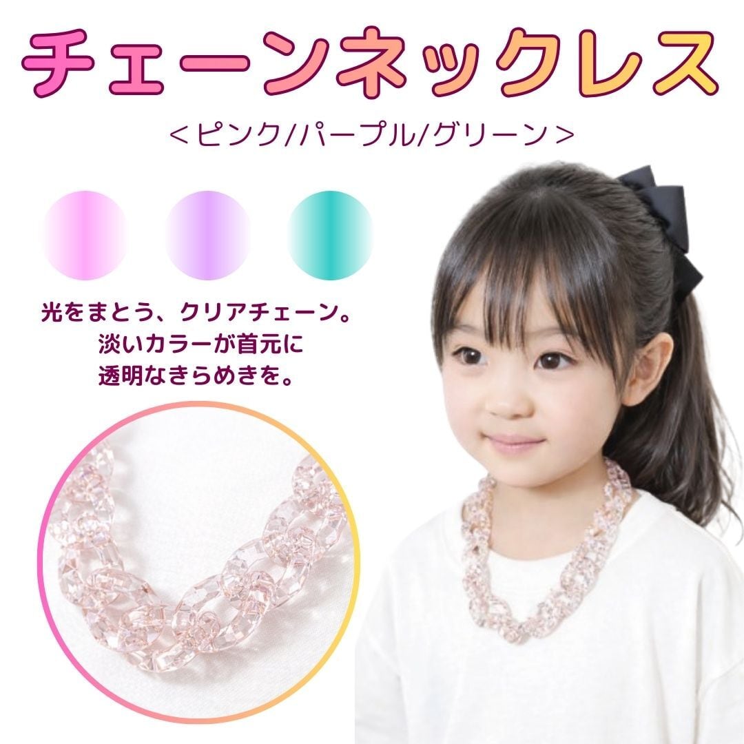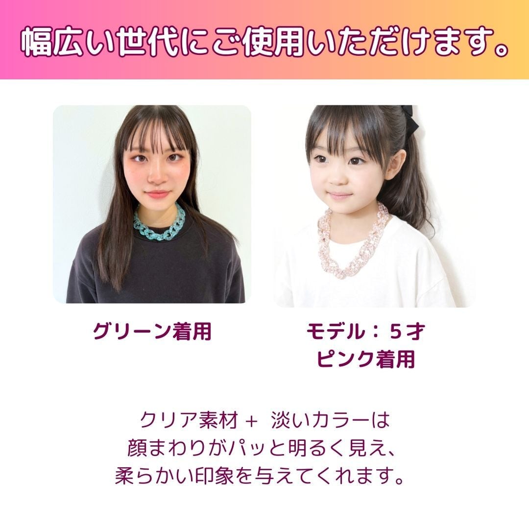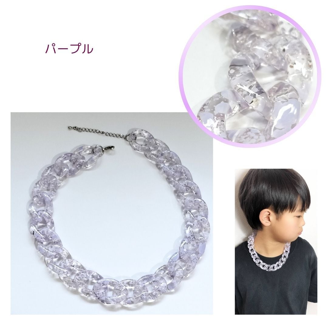 チェーンネックレス ネックレス クリア ピンク パープル グリーン 軽量 サイズ調節可能 レディース メンズ キッズ 韓国ネックレス