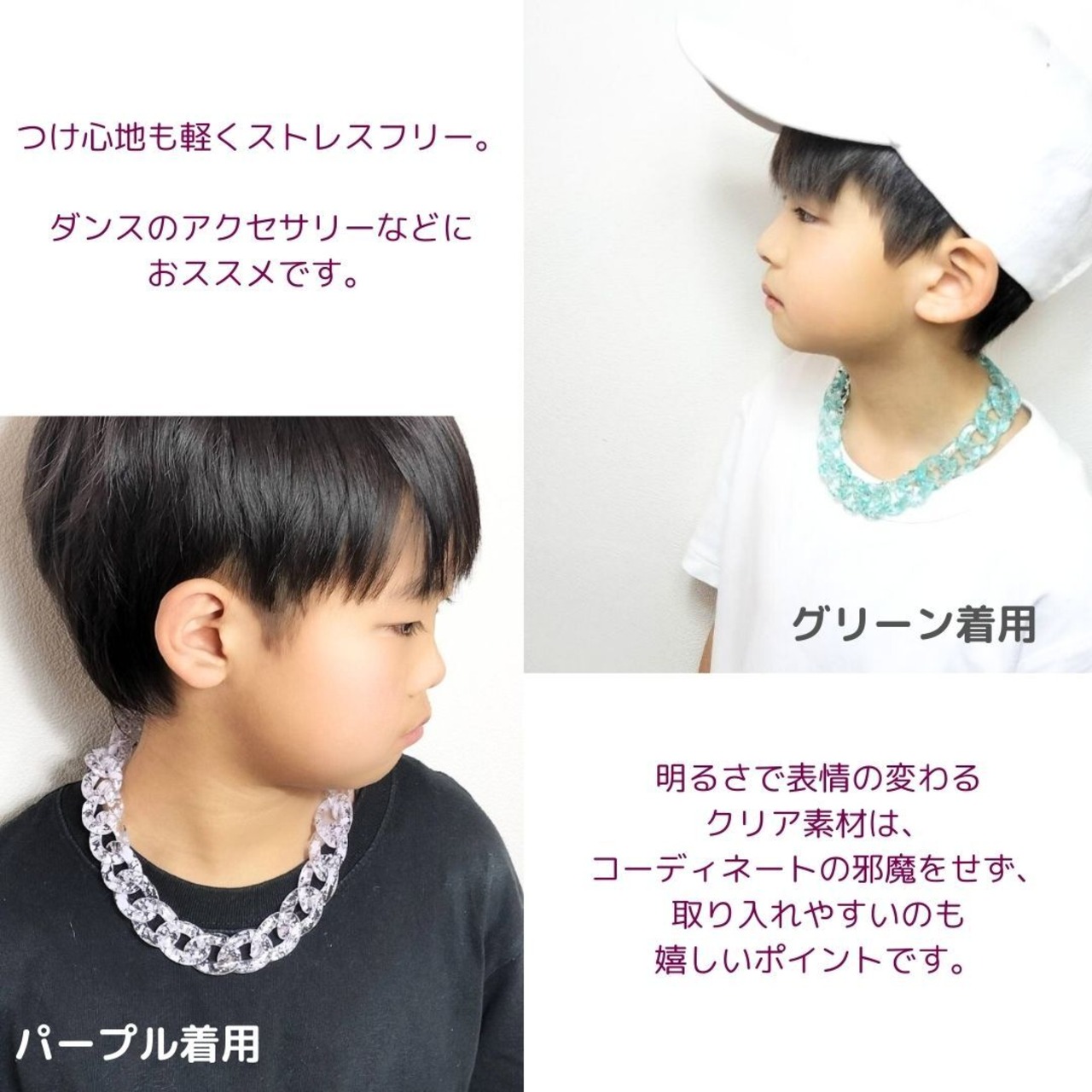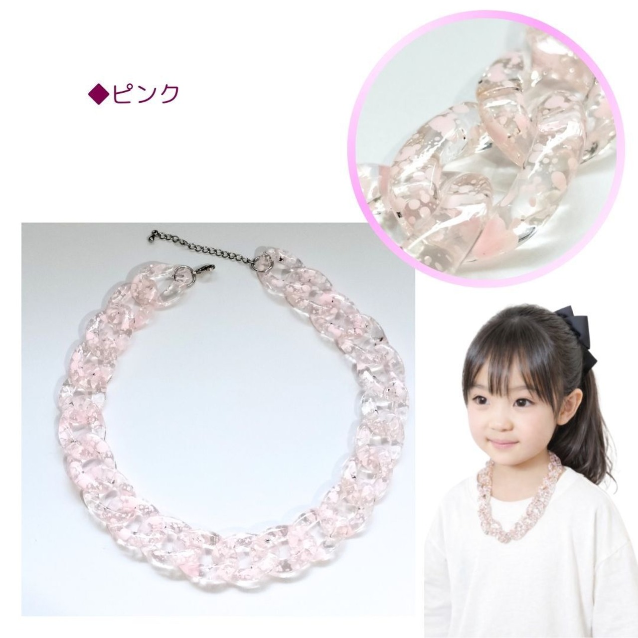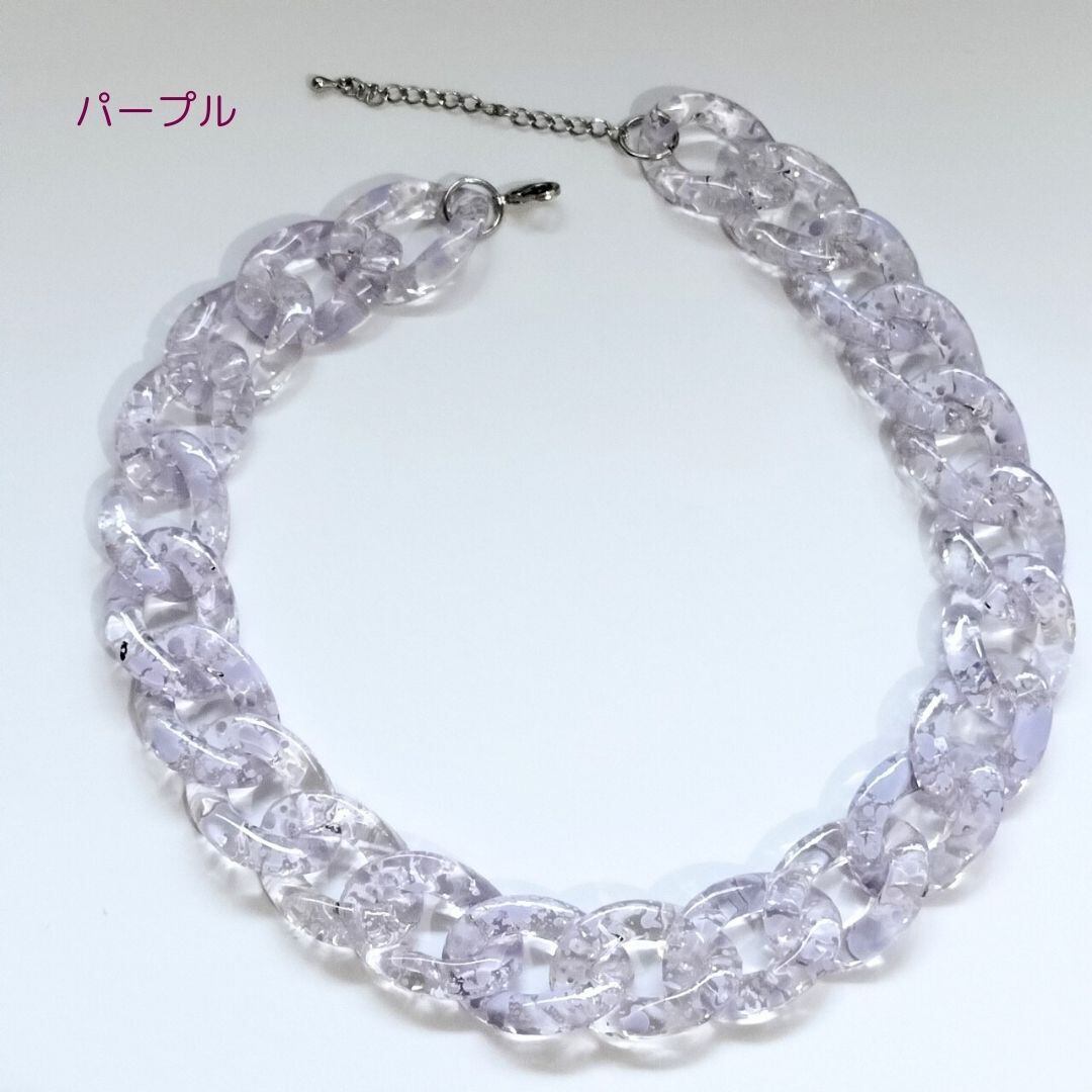 チェーンネックレス ネックレス クリア ピンク パープル グリーン 軽量 サイズ調節可能 レディース メンズ キッズ 韓国ネックレス